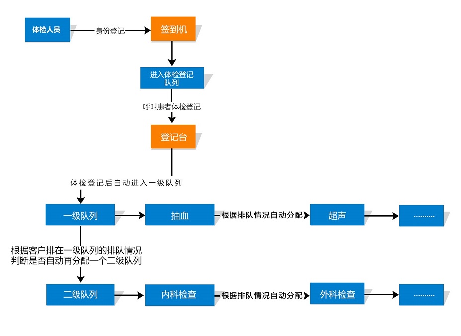 l 系统按序自动安排体检者到最合适的医生处就诊,真正实现了“个人化”服务。