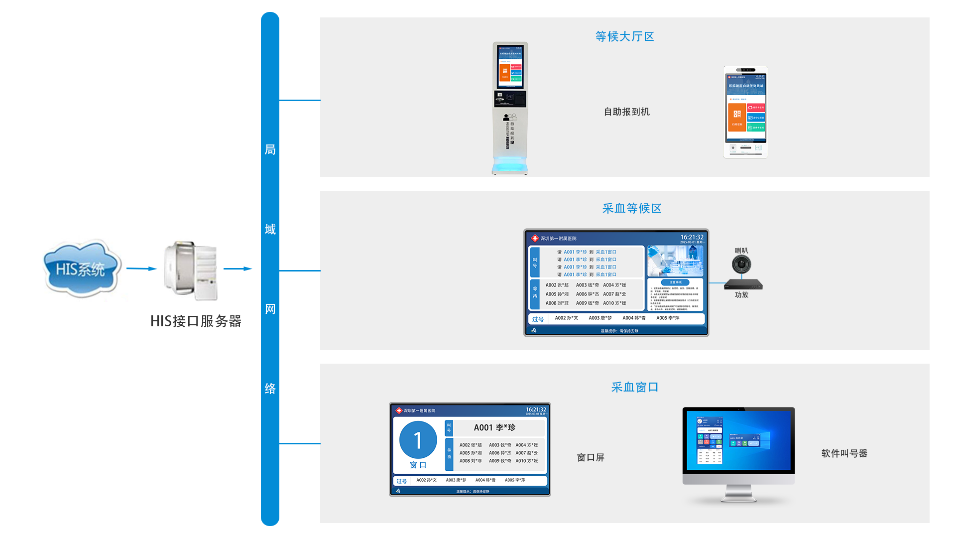 随着生活水平的不断提高,人们对医疗保健的关注日渐提升,社会对医院的服务和人性化程度也有了新的要求,目前排队叫号系统已成为各大医院信息化建设的必不可少的部分。检验化验是门诊病人最常见的辅助检查,病人经常需要排队等候抽血,特别是大型医院的抽血中心。大部分的检验项目要求早上空腹抽血,病人体质弱、空着肚子,一般是站着排队,容易引起病人之间的插队、侵犯个人隐私等纠纷,浪费病人的就诊时间,同时影响检验结果质量。